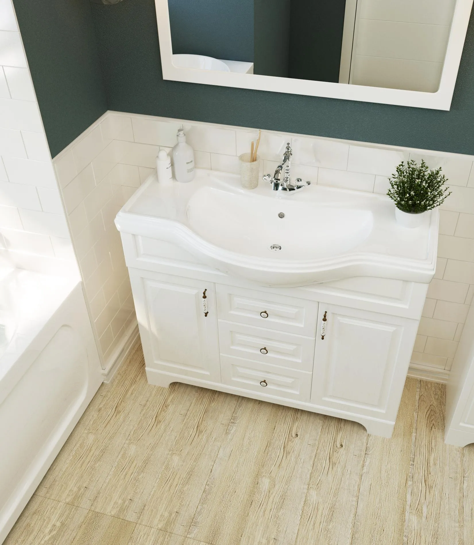 Тумба в классической благородной стилистике, которая разделена на несколько функциональных отсеков разного размера, благодаря чему превосходно подходит для хранения самых разнообразных предметов и личных вещей. Она станет прекрасным выбором для тех, кто ищет безупречное сочетание эстетики и функциональности в мебели для ванной комнаты. Изящная и элегантная, эта тумба отражает дух прованса и станет актуальным и уместным дополнением самых взыскательных традиционных интерьеров. Комфорт и удобство ее использования обеспечиваются качественной, проверенной временем немецкой фурнитурой Hettich.