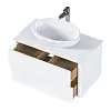 Матовый фасад, интегрированные ручки, стеклянная столешница и полки в тон теплому дереву придают интерьеру изящность и подчеркивают его уникальный характер. А белый цвет делает тумбу подходящей для большинства интерьеров ванной комнаты.
